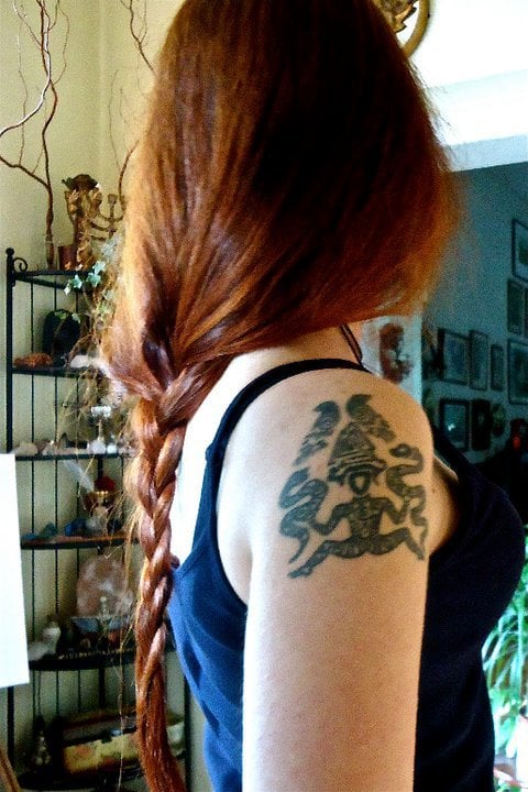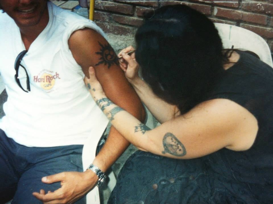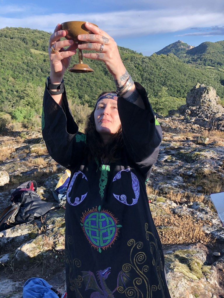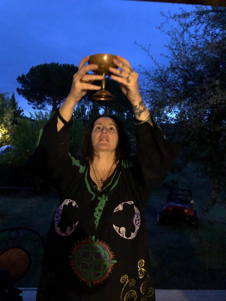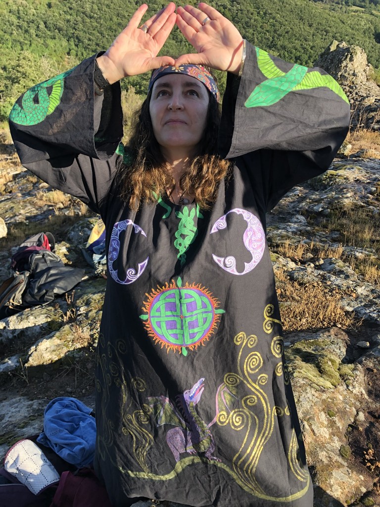 Sono Flavia Wolfrider, amo l’Arte, dipingo, scrivo, realizzo gioielli esoterici, dei talismani con rame e legno e altri materiali consacrati, tatuo dal 1977, faccio dei tatuaggi a mano seguendo l’Antica tradizione Europea. Il mio tattoo studio itinerante, attivo dal 1977, si chiama Tir Na Nog. Sono druida, sciamana, erborista diplomata. Ho fondato inoltre una scuola esoterica chiamata Antico Sentiero Europeo Scuola di Draco. Ho fondato, anni fa, il FullMoonClub, e ora sono la direttrice artistica. Il FullMoonClub, il primo e ancora l’unico club esoterico/pagano/metal di Roma. Sono la Madre del Clan Wolfrider.